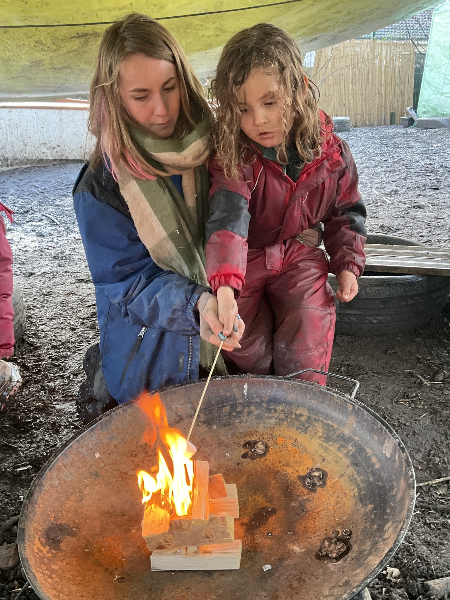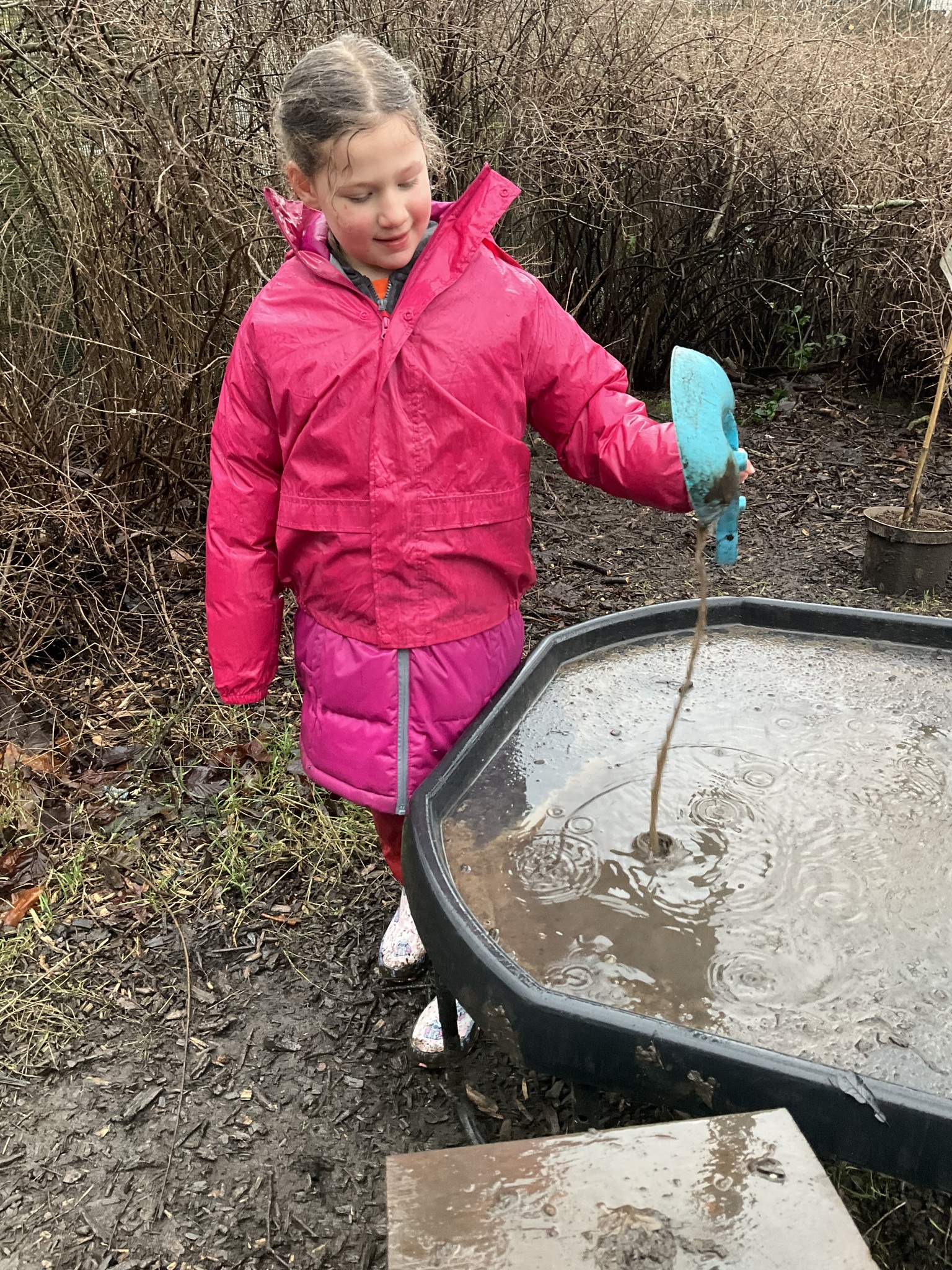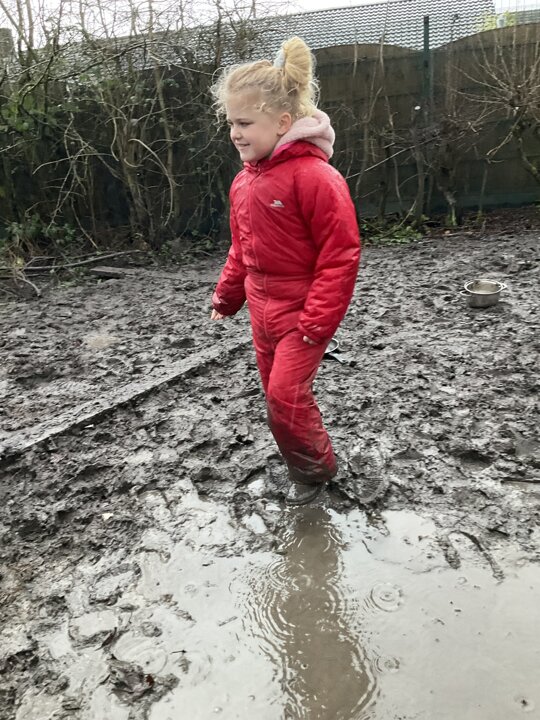 They engaged in lots of fun, muddy play, met the chickens and the guinea pigs and lots of outdoor exploration!