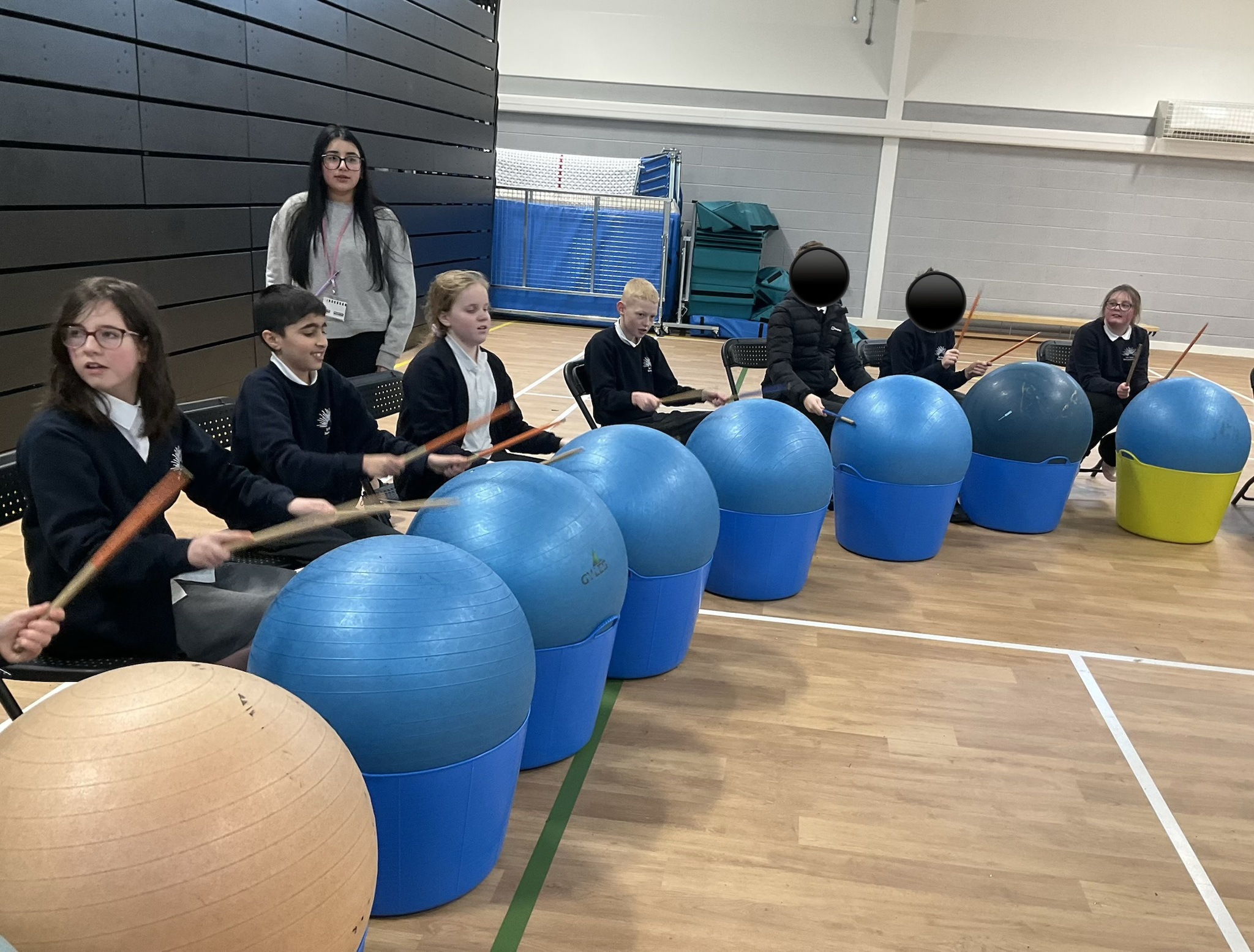 Pupils practised following the beat, striking the drums, and working together to keep rhythm as part of a group. It was wonderful to see everyone so engaged, building confidence, teamwork and musical skills.